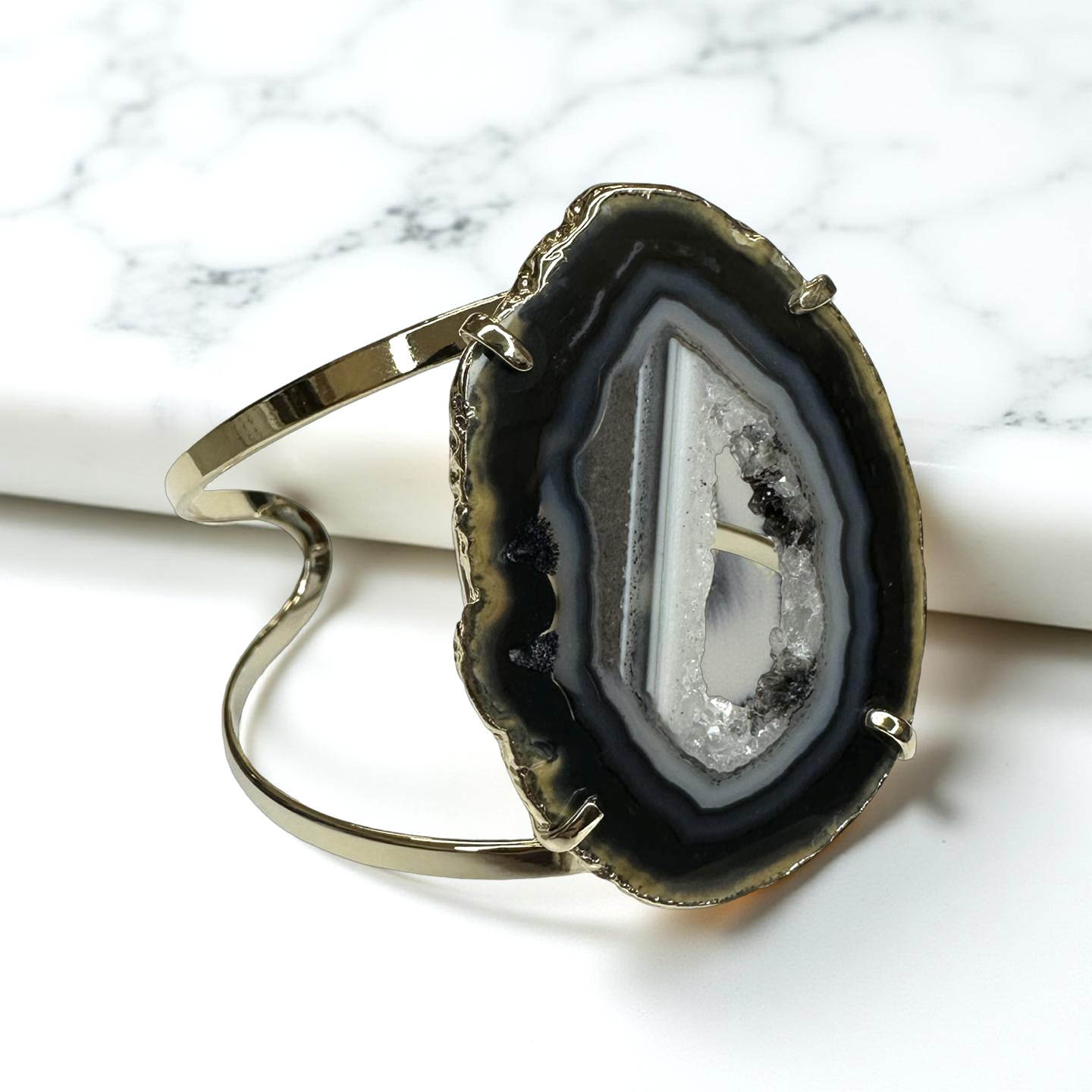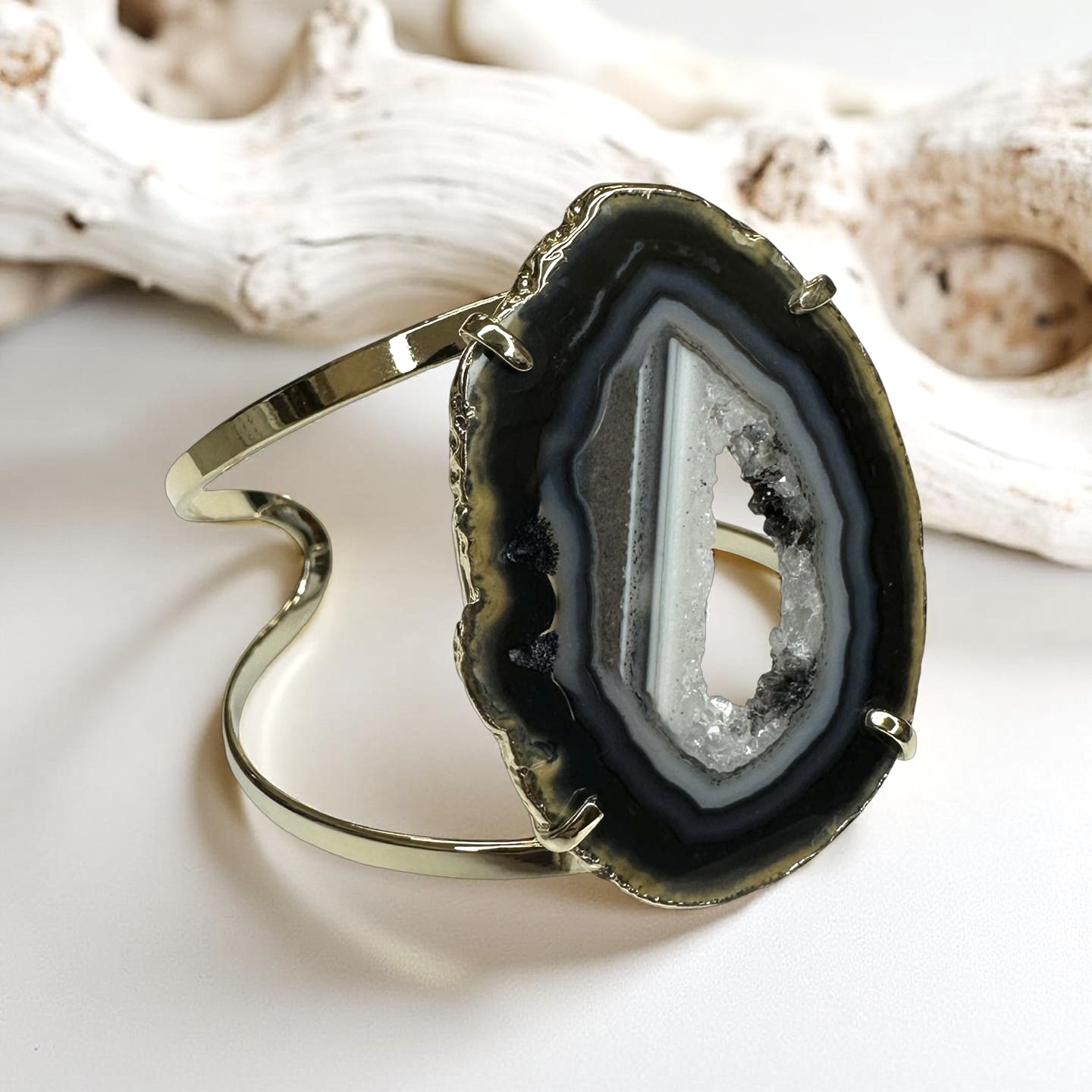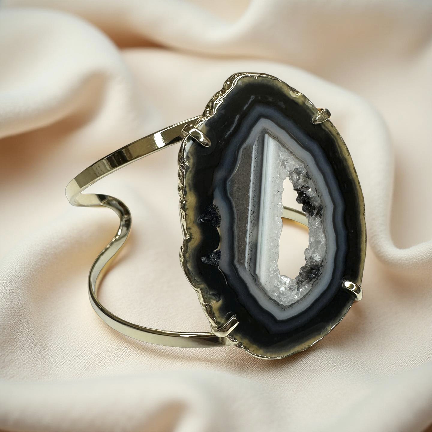 Vackert ställbart armband i elektroplätering med agatskiva.