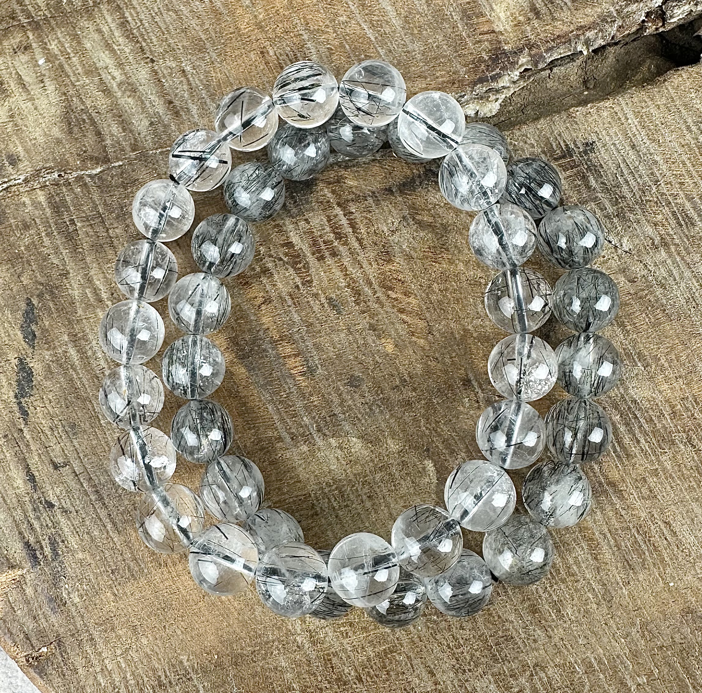 Vackert, elastiskt armband av turmalinkvarts.