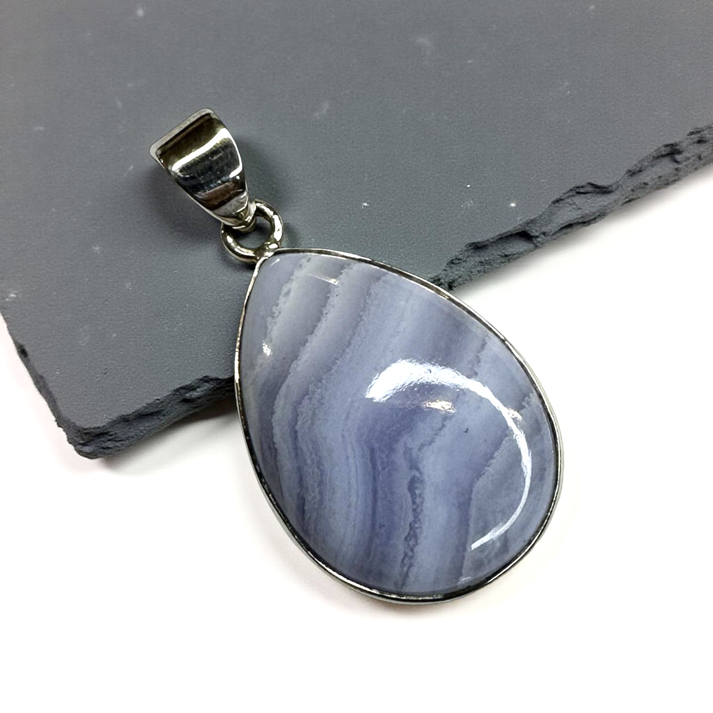 Vackert hänge i blå bandagat och sterlingsilver.