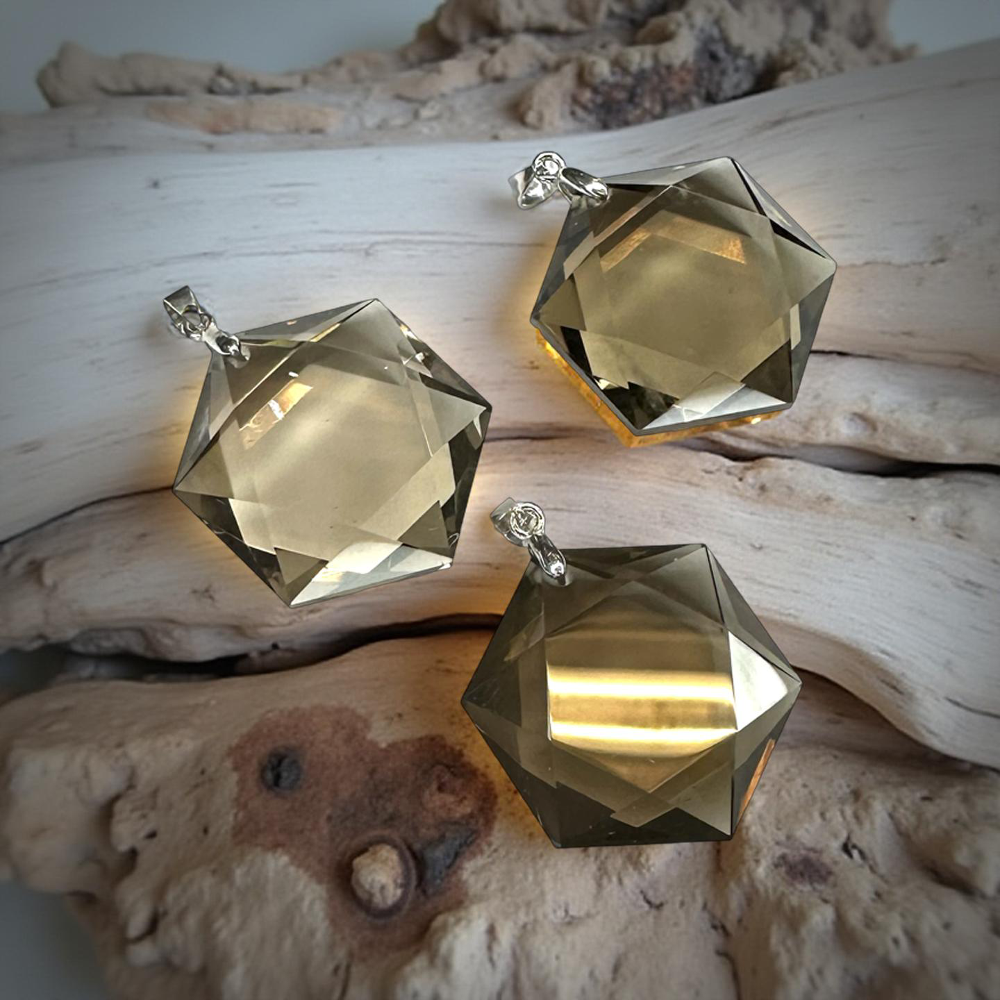 Vackert hänge i facetterad rökkvarts med hänge i sterlingsilver.