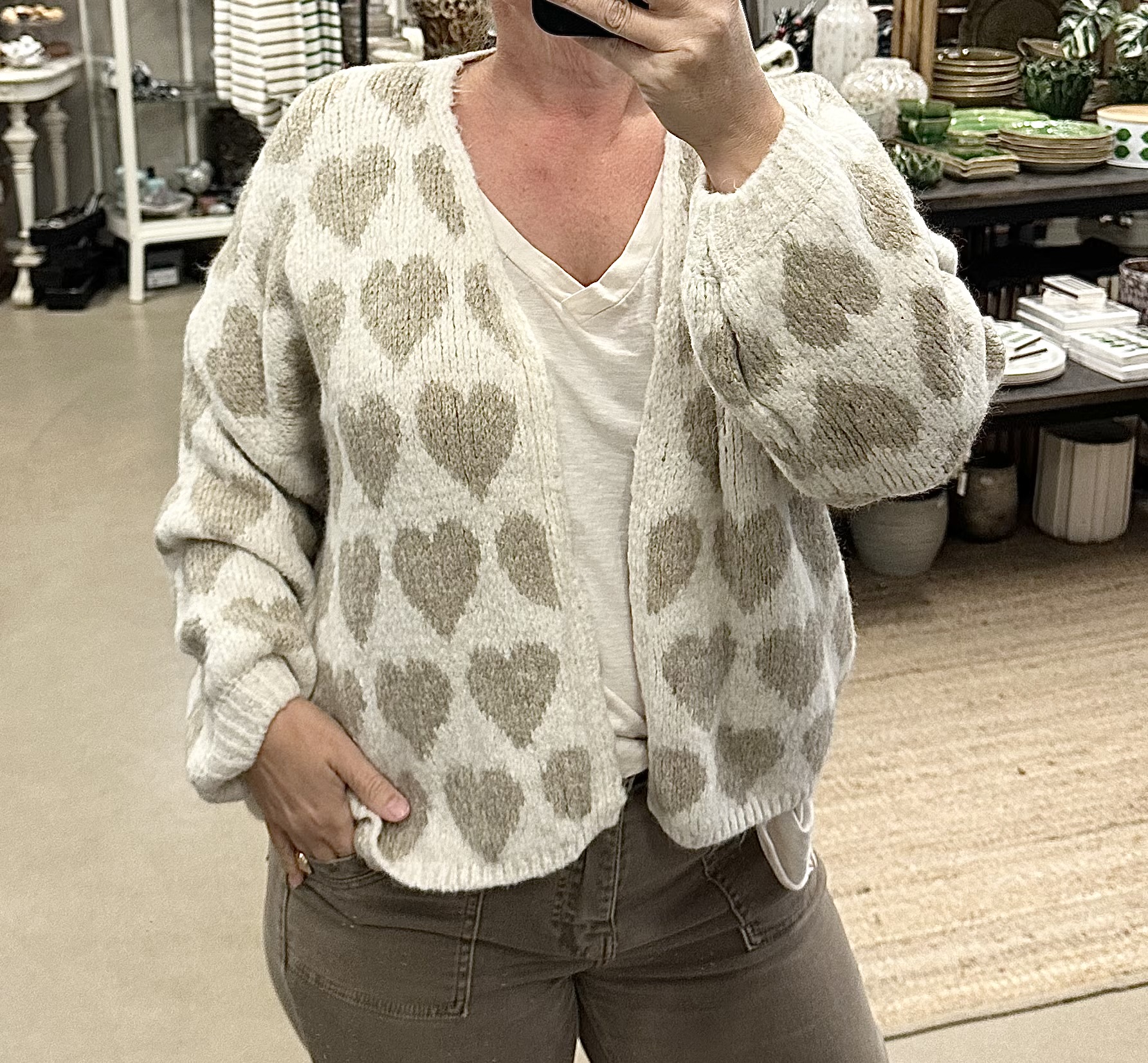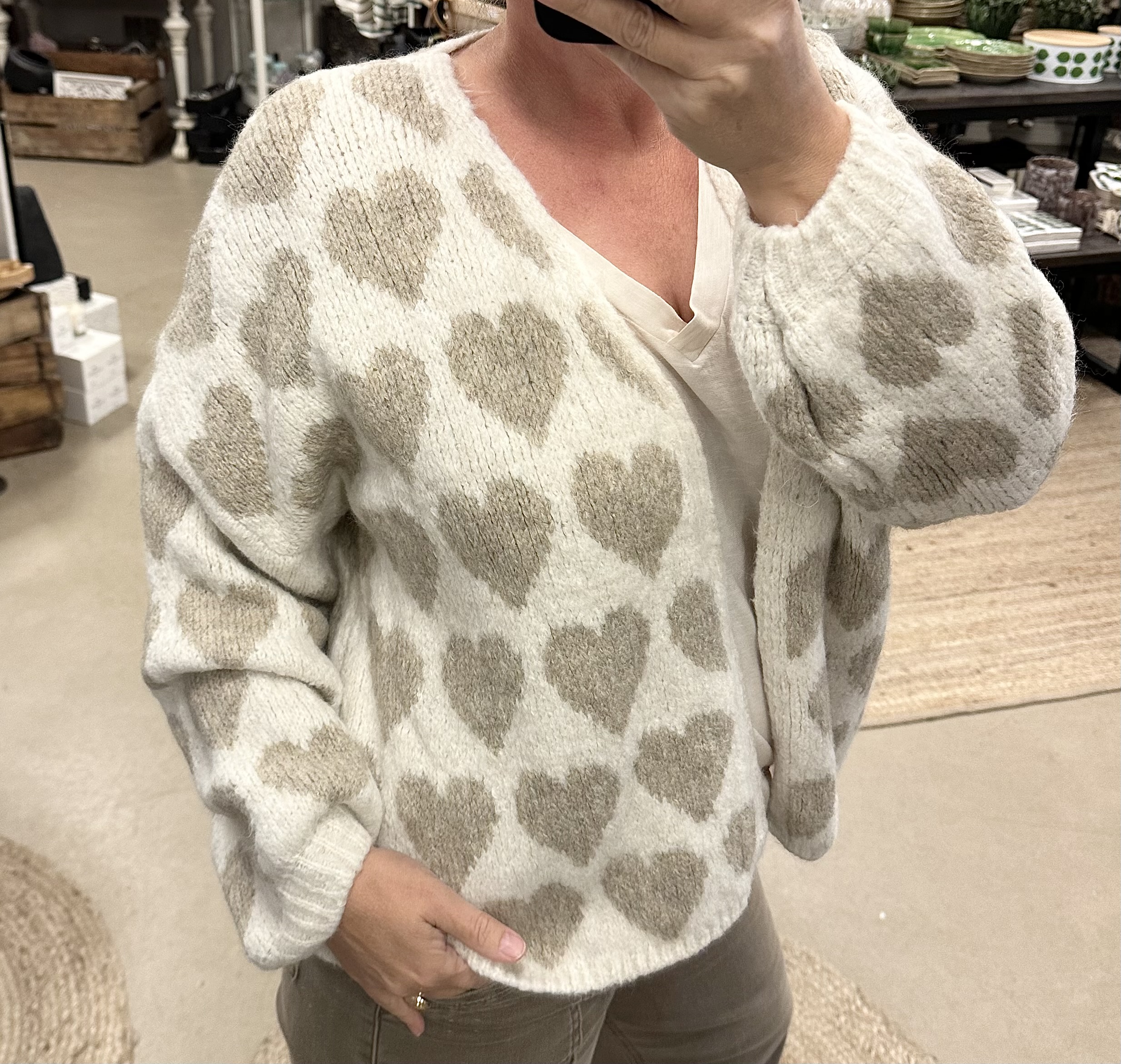 MODELL: Underbar stickad kofta i öppen modell. Fina hjärtan över hela.