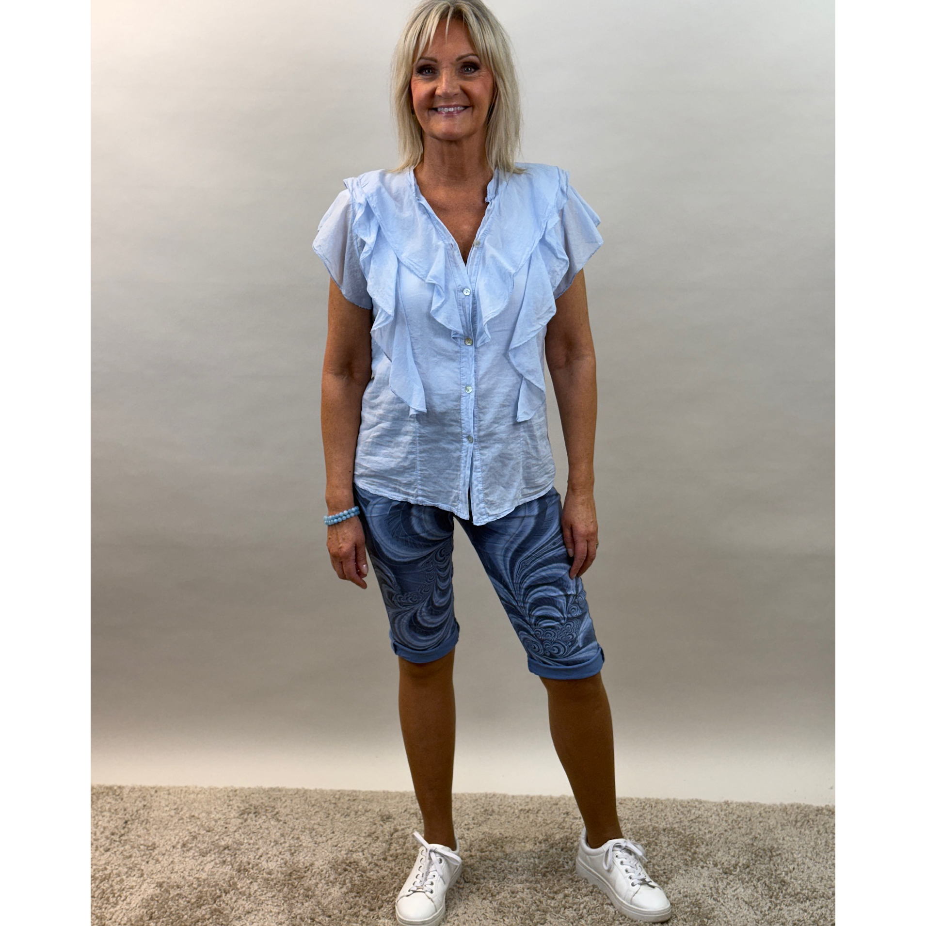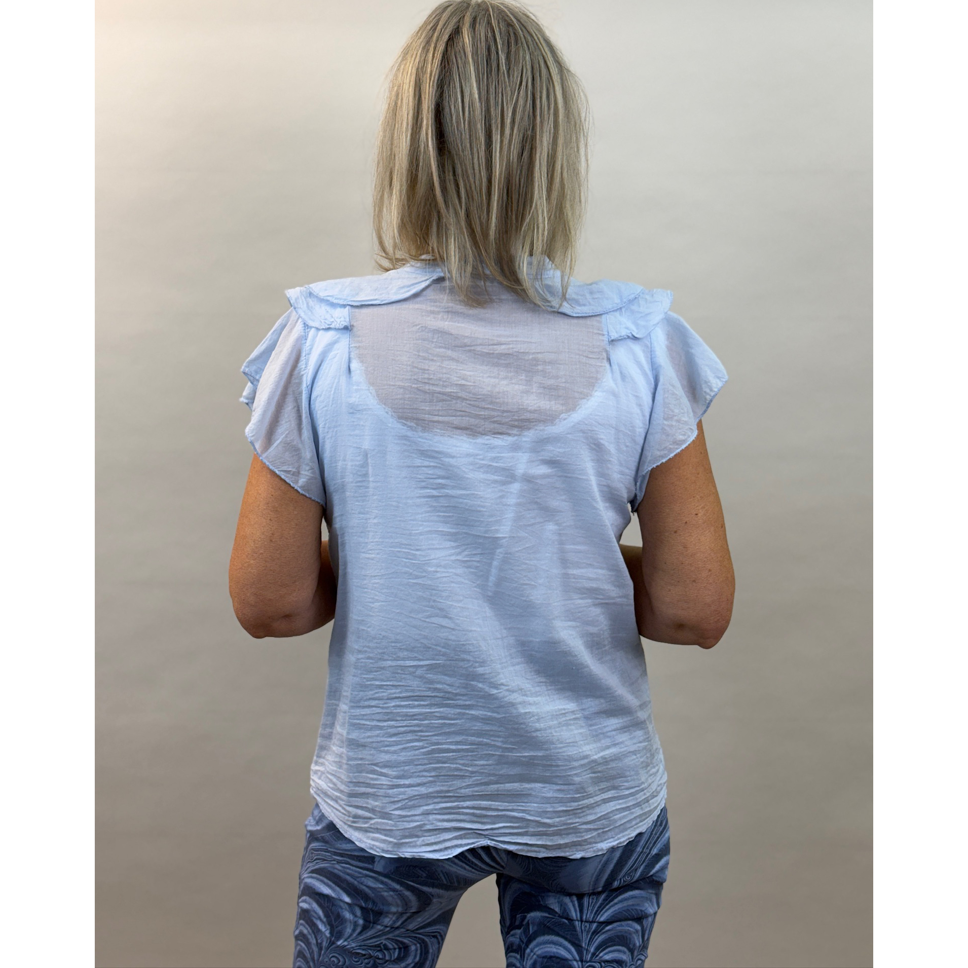 MODELL: Tunn, söt blus med kort ärm och volanger framtill.