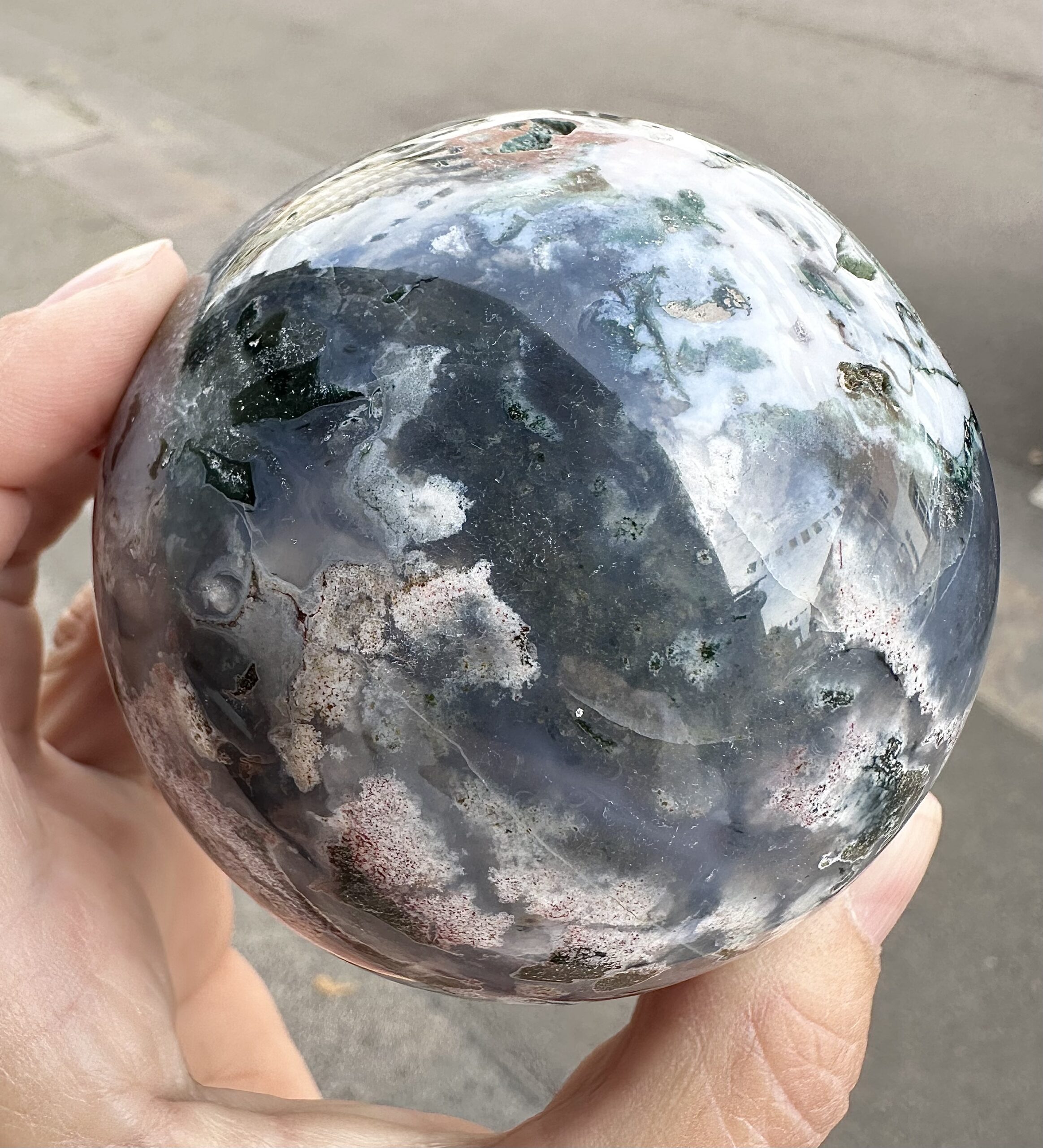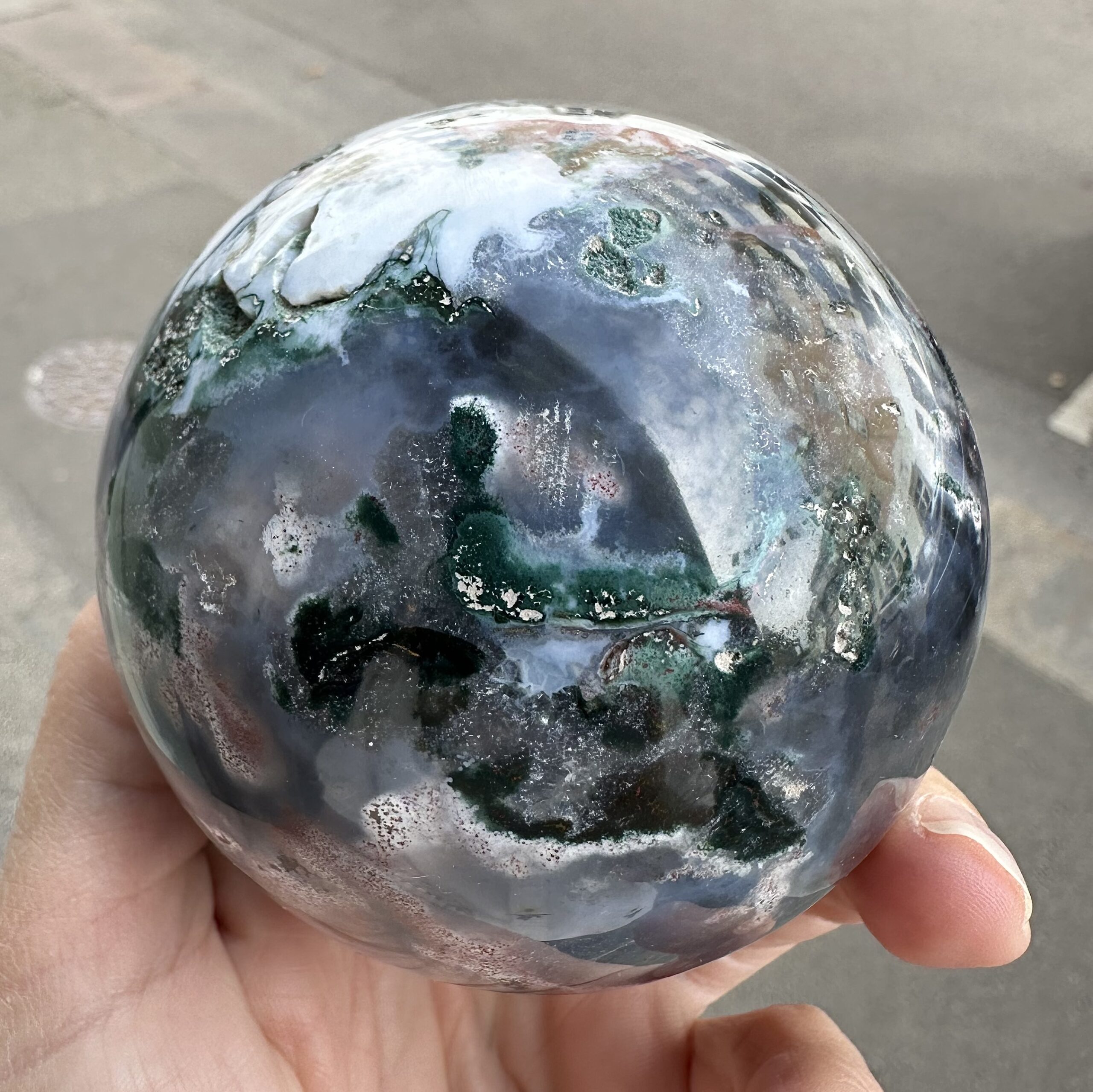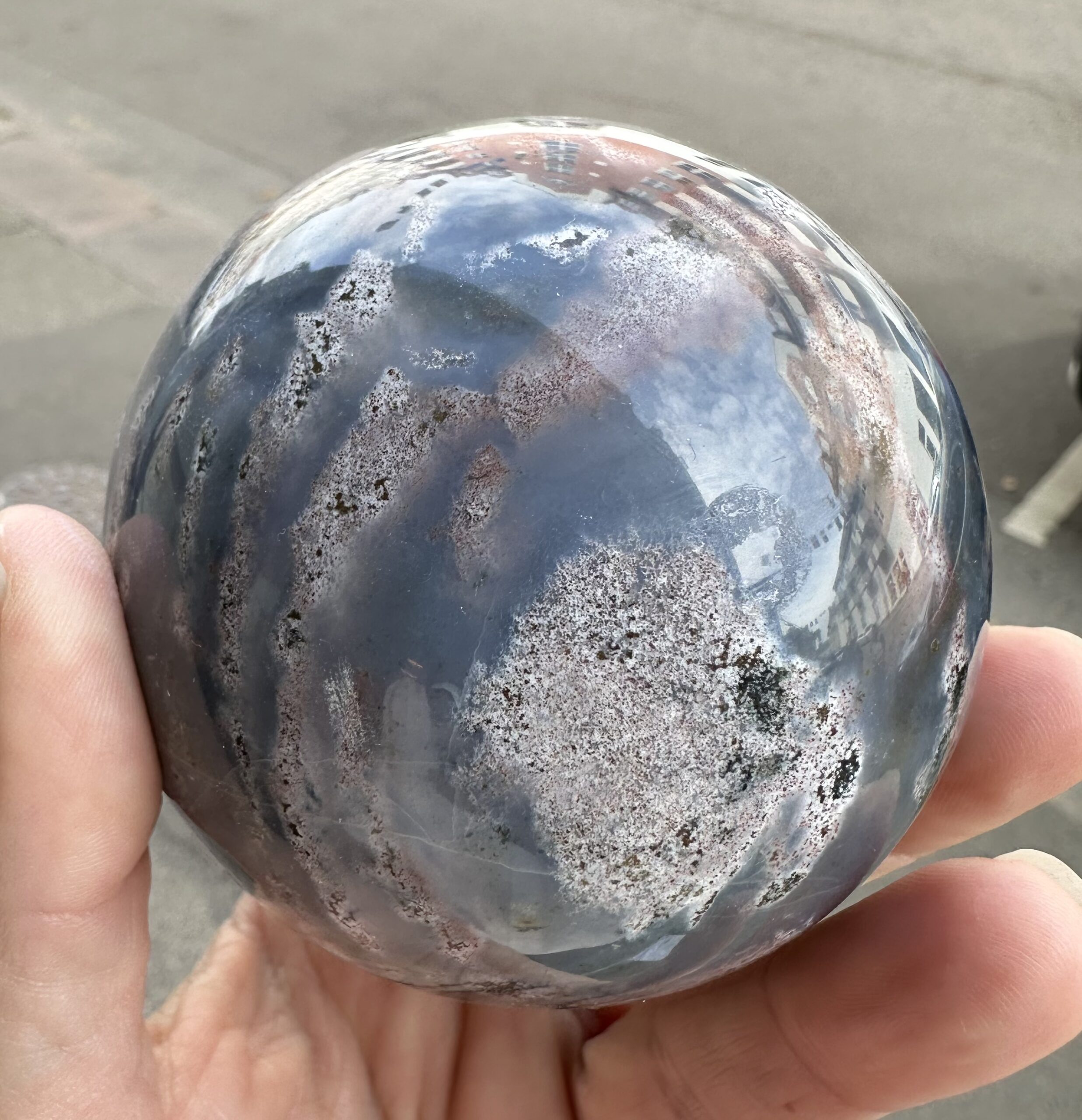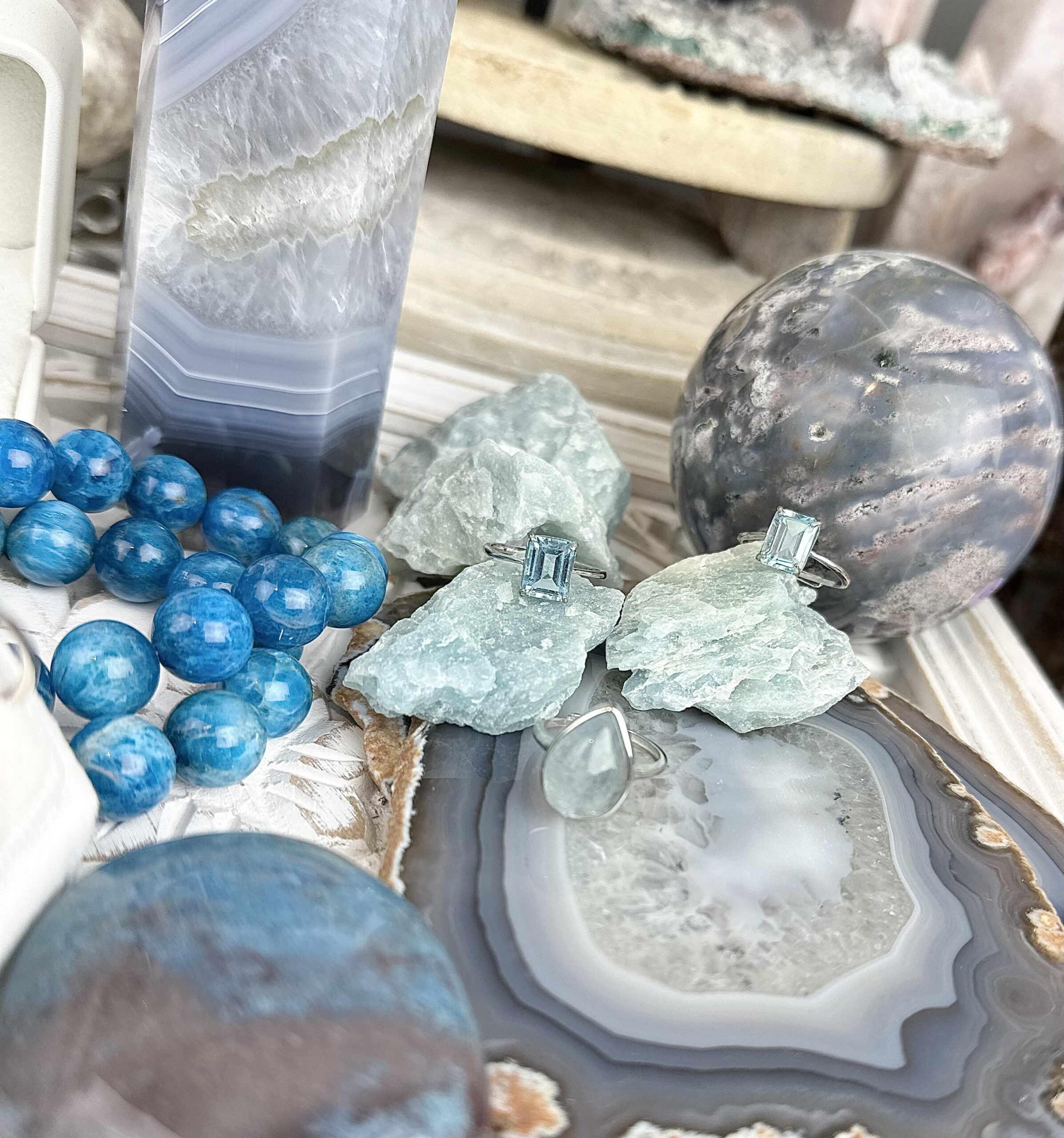 Vackert klot i blå kalcedon/mossagat.