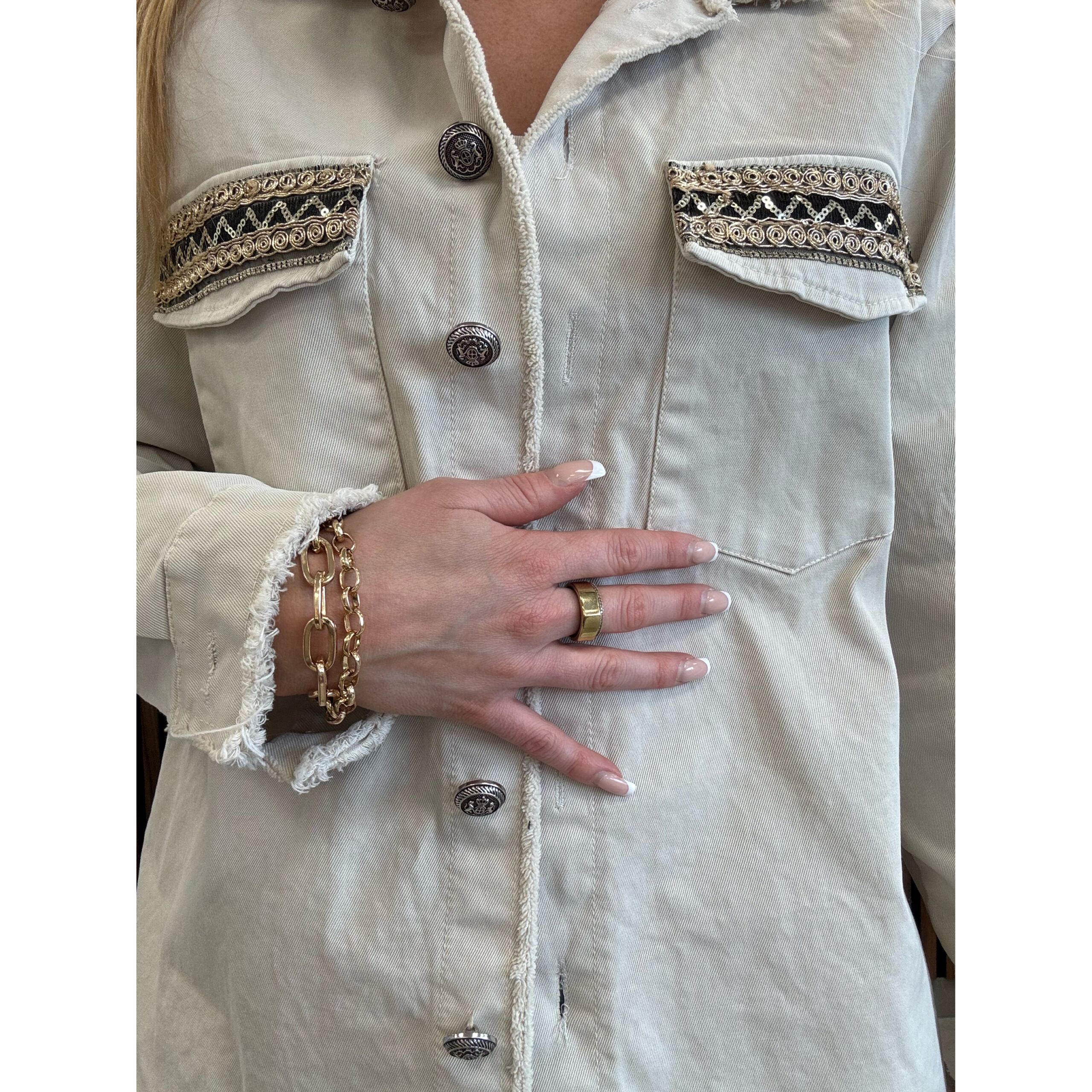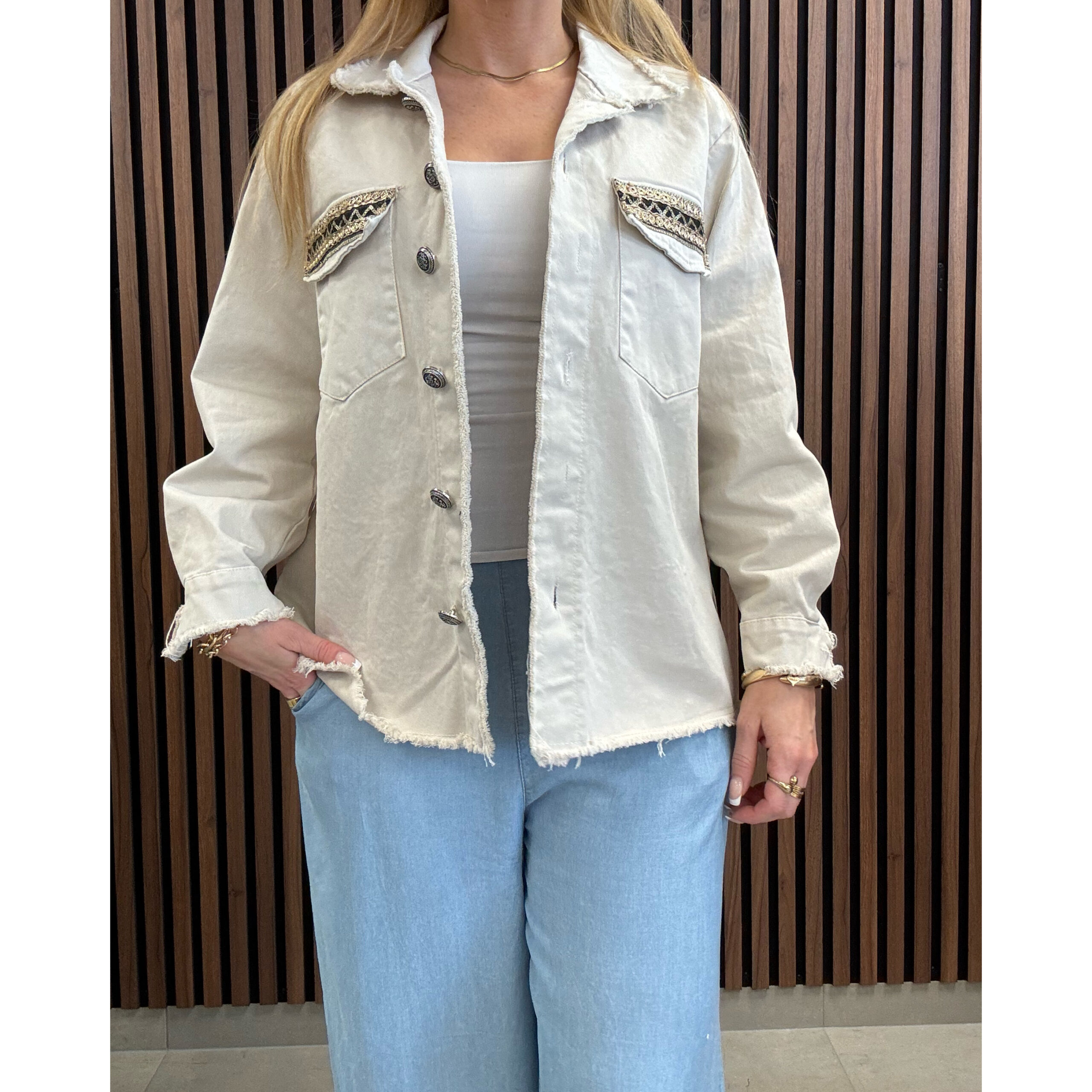 MODELL: Snygg jacka i bomullsdenim med dekor på ficklocken fram. Hellång ärm med manschett samt knappar fram. Rak i modellen.