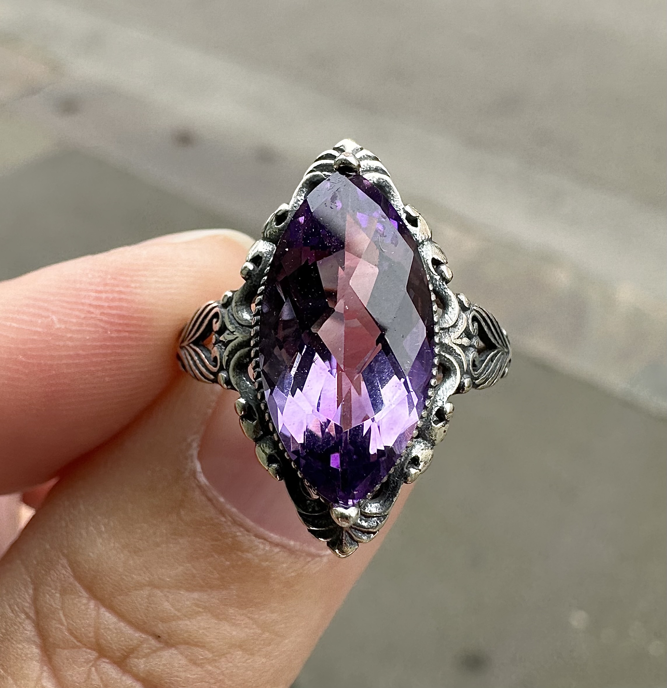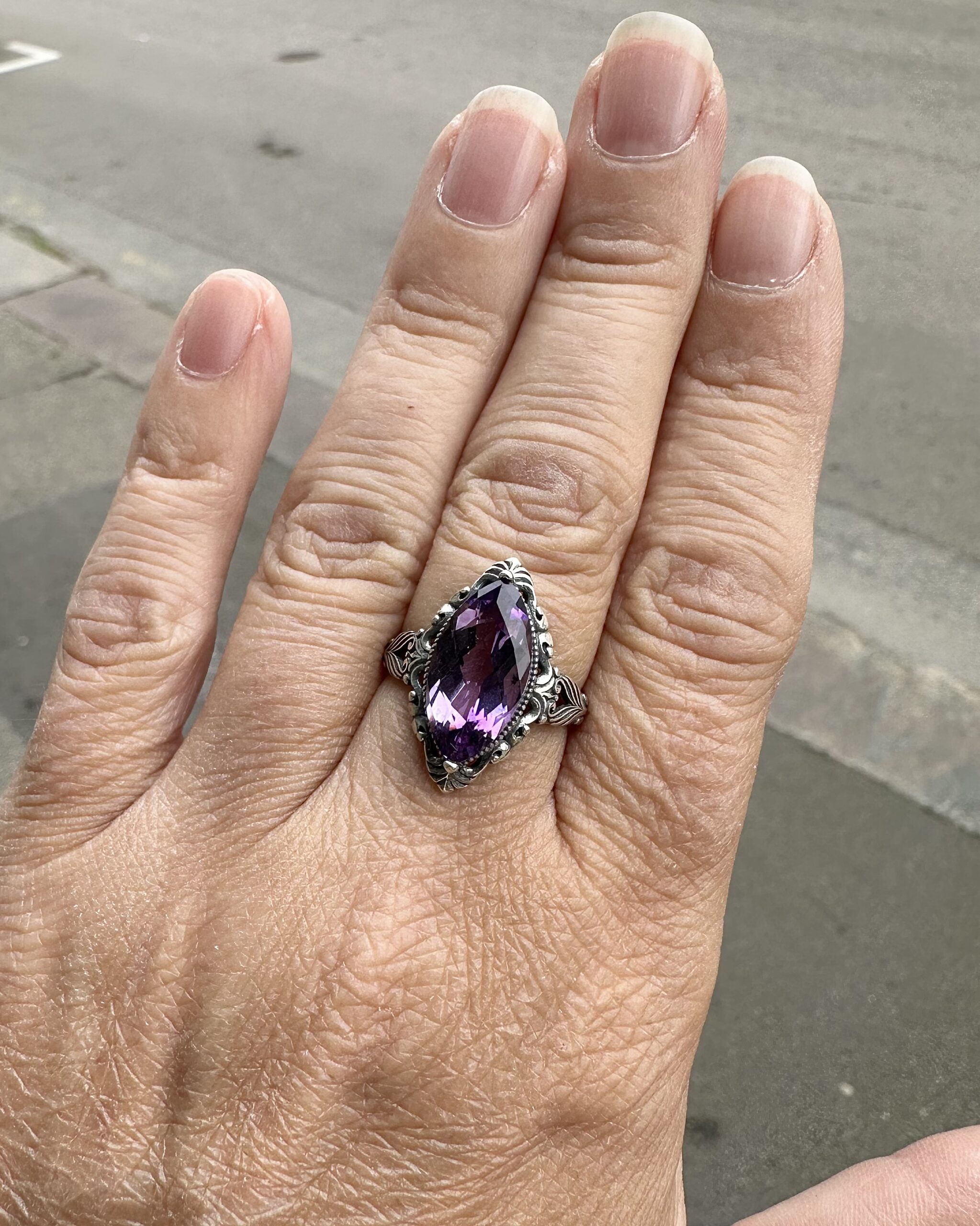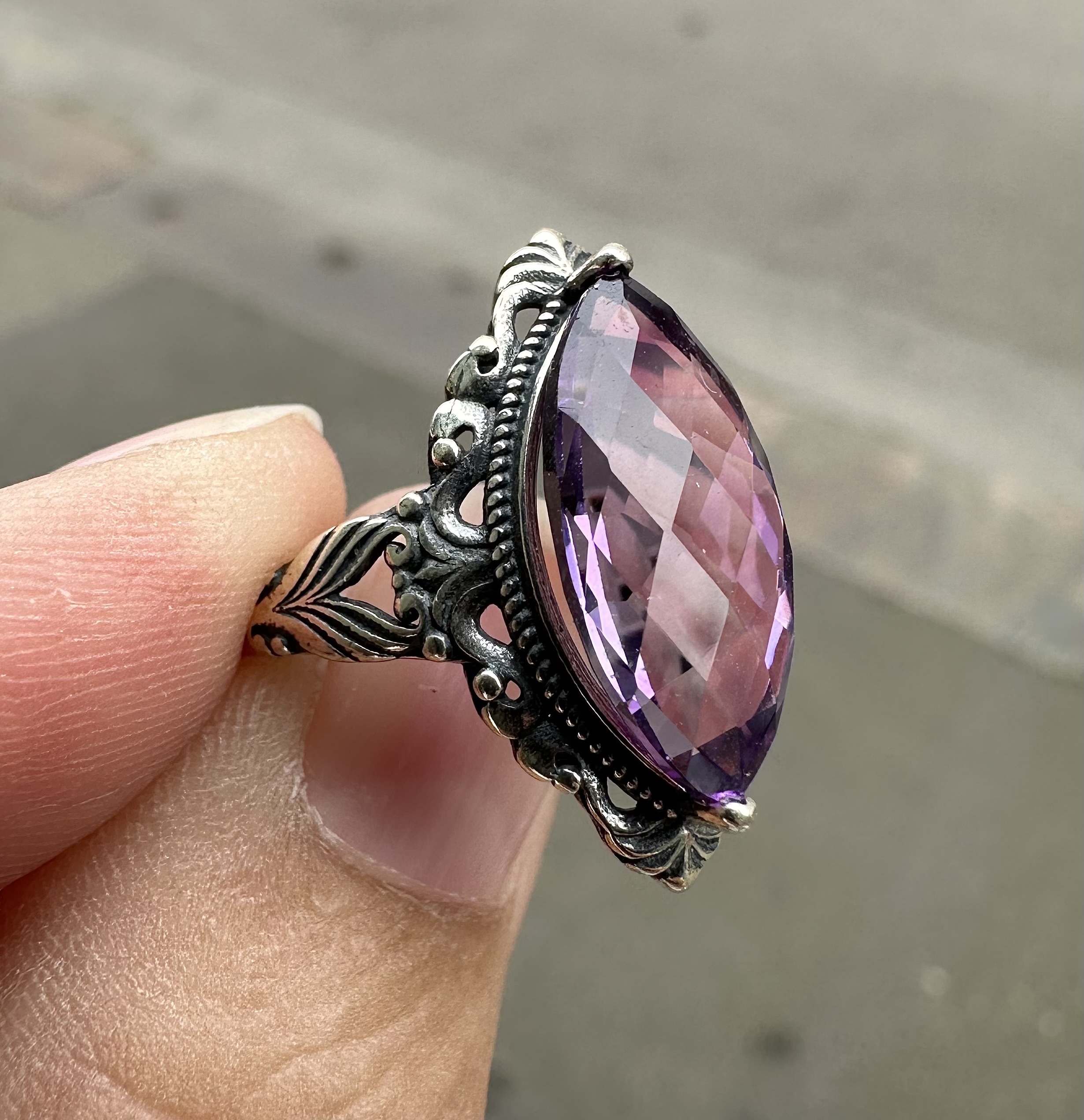 Vacker, ställbar ring i sterling 925 silver med facetterad kristall.