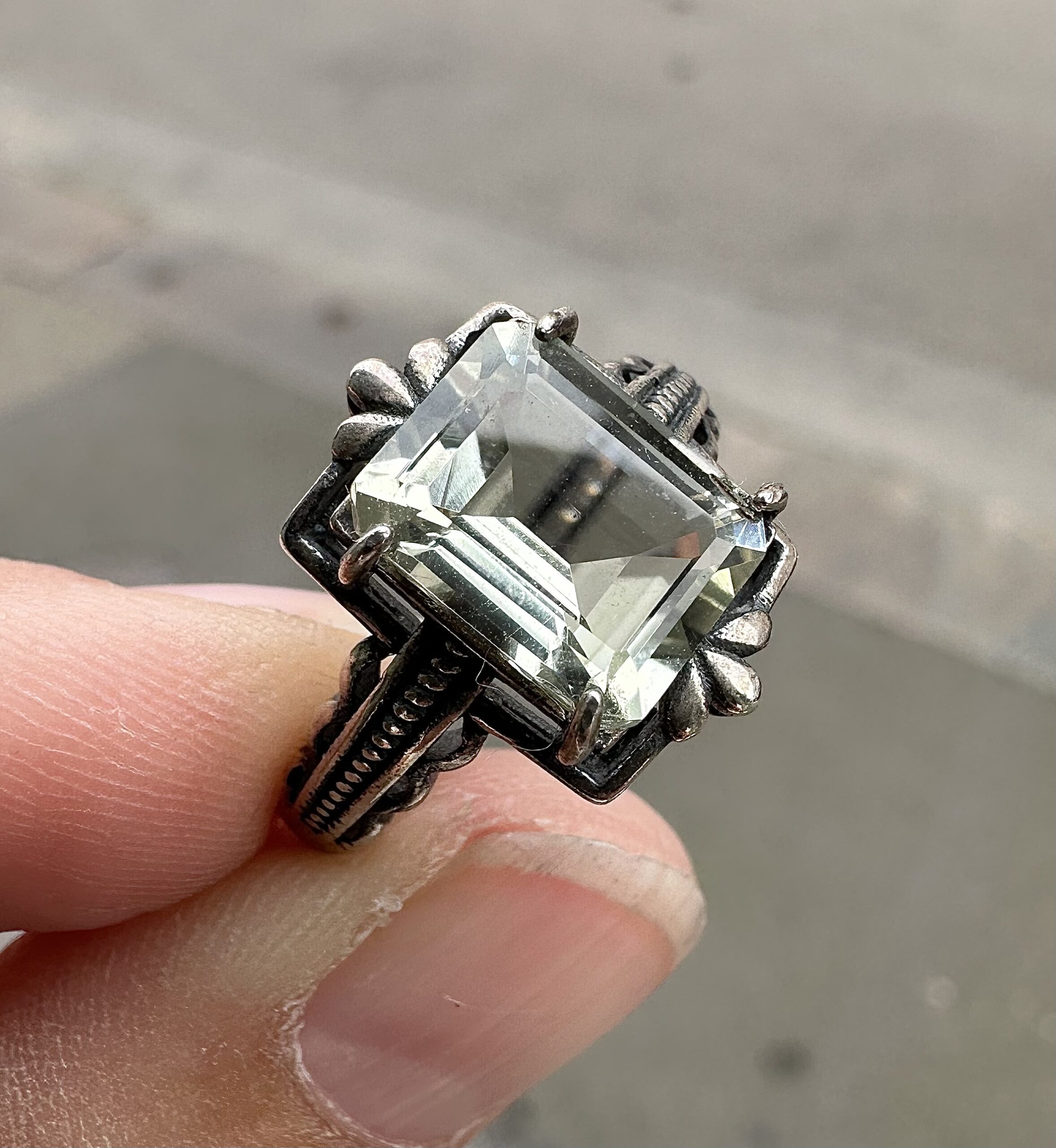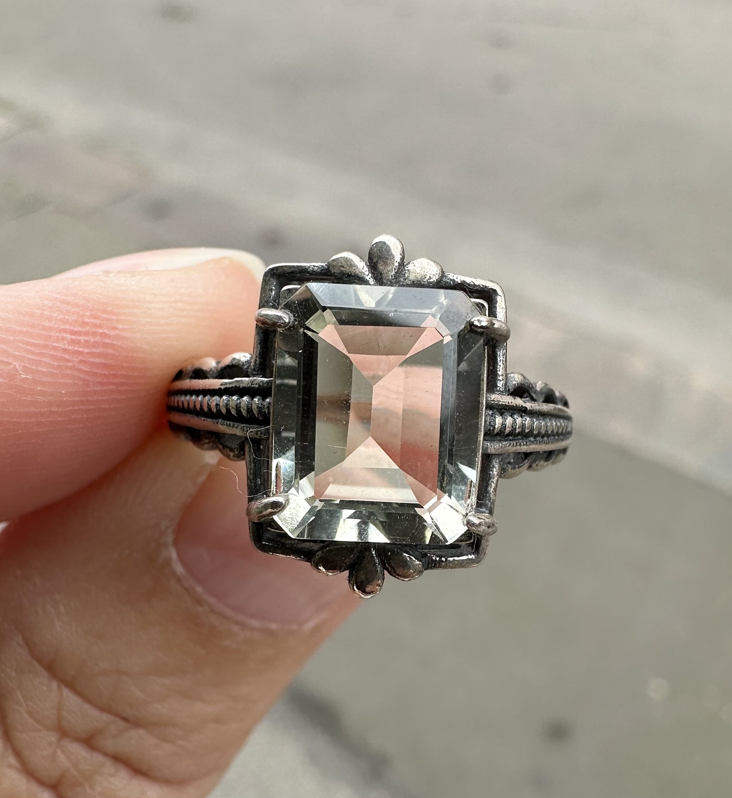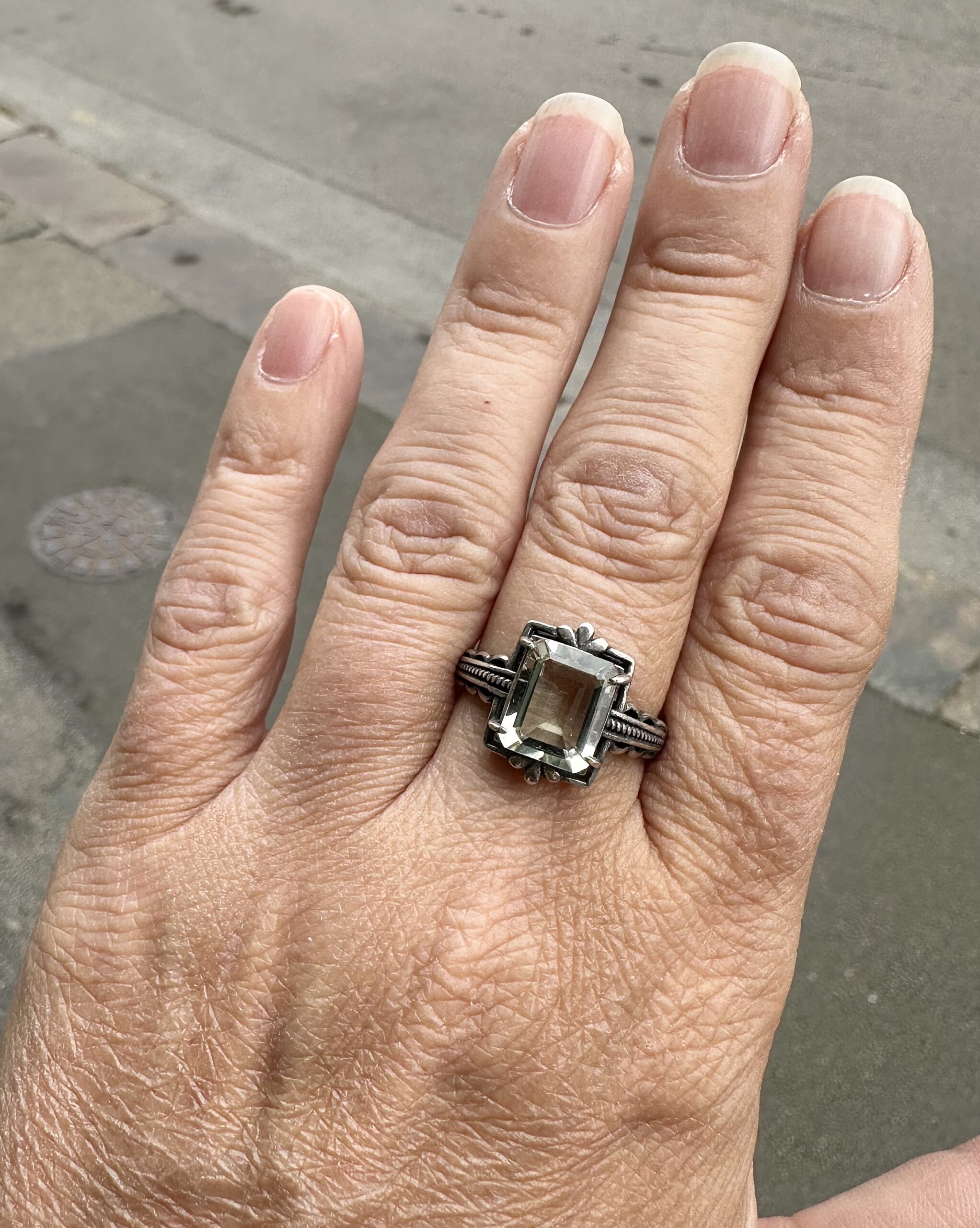 Vacker, ställbar ring i sterling 925 silver med facetterad kristall.